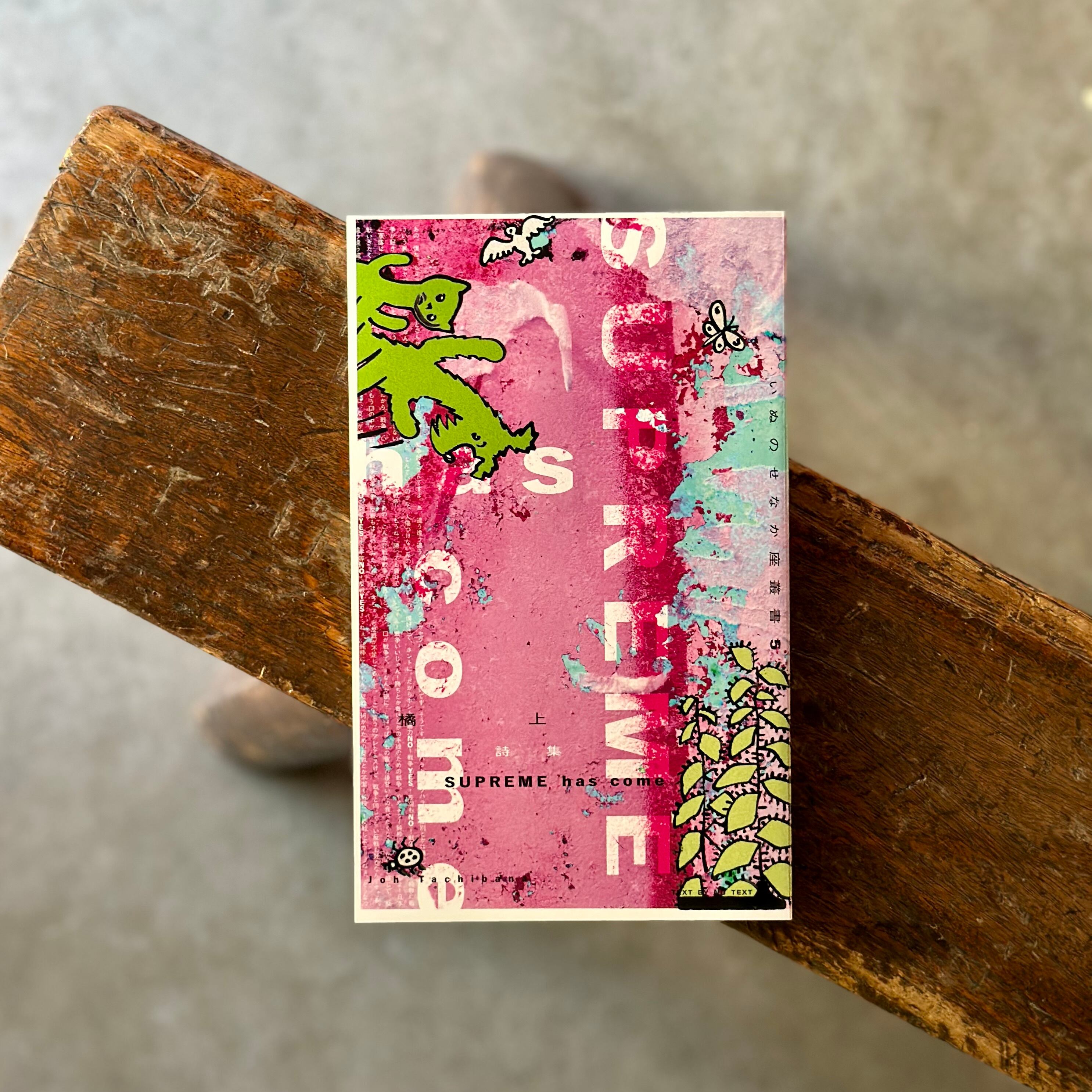 激しく空転する独白が言葉と意味を脱臼し、代え難いユーモアと切実さを放つ詩集『複雑骨折』などで知られる橘上が、「NO TEXT」での言葉の氾濫に自ら向き合い、その声と批評性を純化、増幅することで成立させた、6年ぶり待望の新詩集『SUPREME has come』。