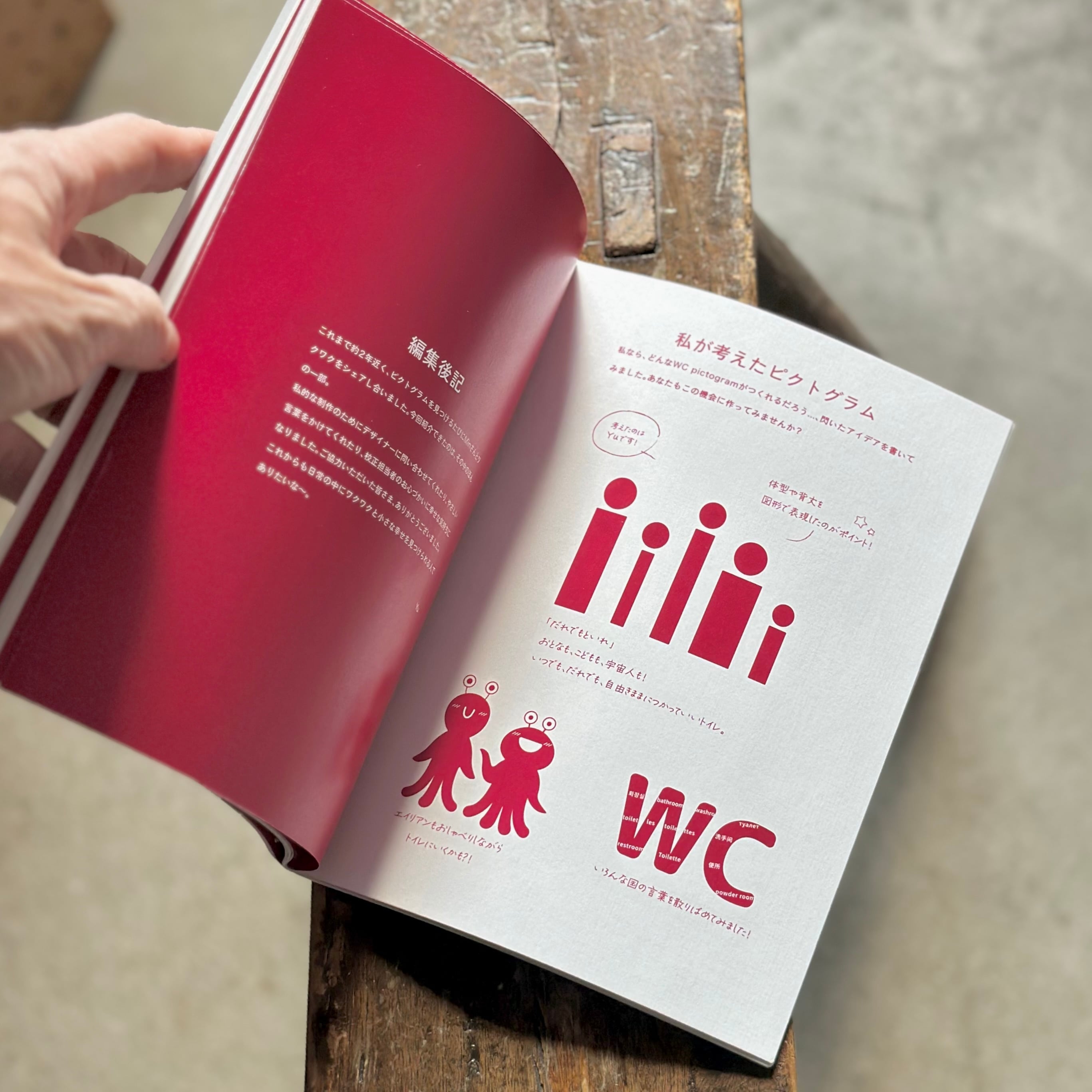 気になったマークの解説や、私が考えたピクトグラムなど、1冊ので2冊分楽しめる。